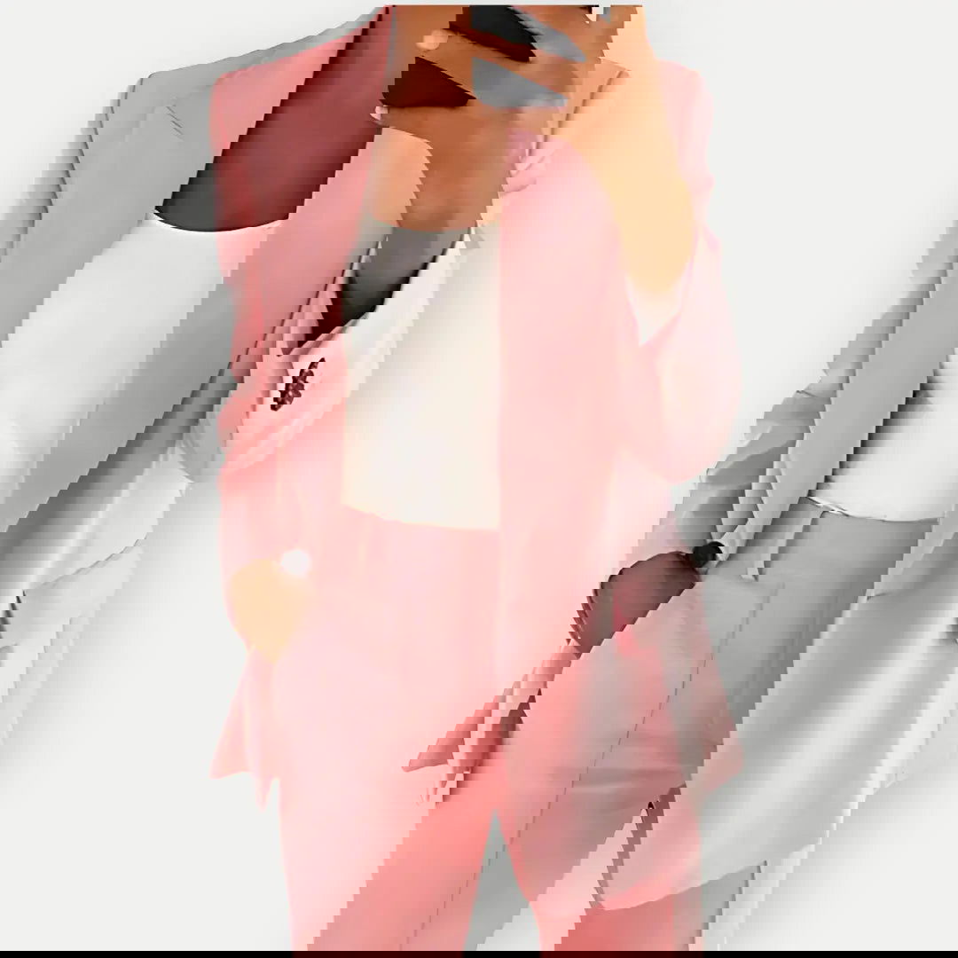 Effortlessly polished and confidently feminine, Martyna is a contemporary two-piece set designed to elevate everyday sophistication. The tailored blazer paired with clean-cut trousers creates a refined silhouette, while the soft pink tone adds a fresh, modern charm perfect for both professional and social settings.